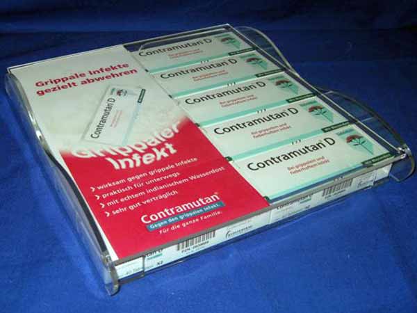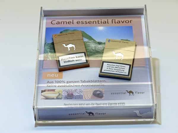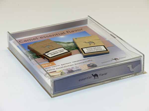 Aufwändiger Zahlteller mit Produktpräsentation.